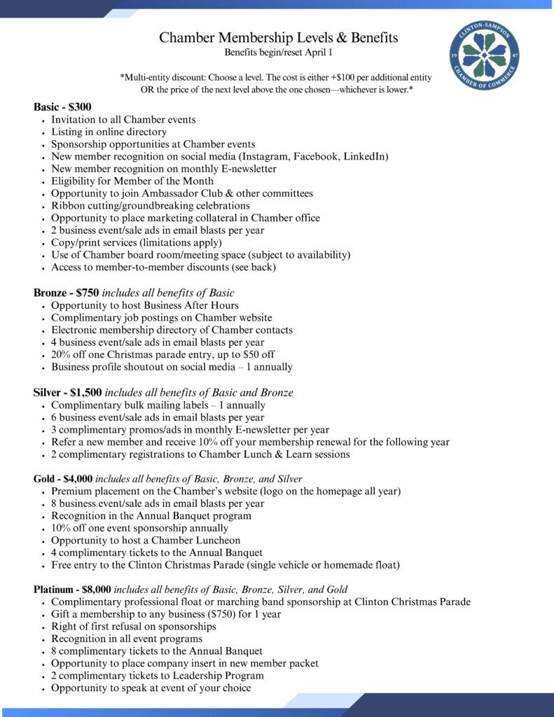 EMAIL: info@clintonsampsonchamber.org